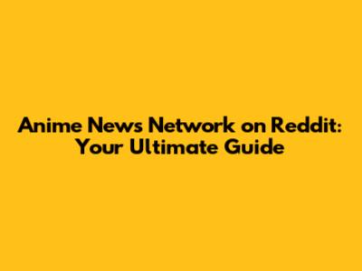 Anime News Network On Reddit: Your Ultimate Guide