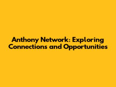 Anthony Network: Exploring Connections And Opportunities