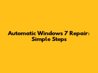 Automatic Windows 7 Repair: Simple Steps