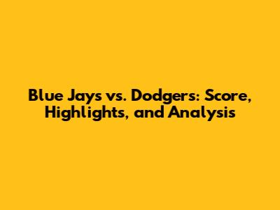 Blue Jays Vs. Dodgers: Score, Highlights, And Analysis