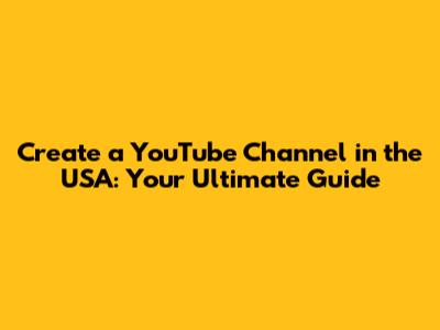 Create A YouTube Channel In The USA: Your Ultimate Guide