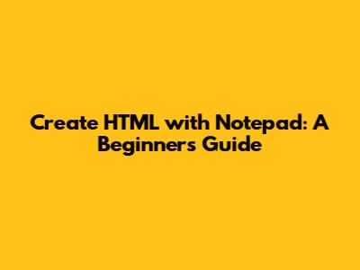 Create HTML With Notepad: A Beginner's Guide