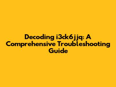 Decoding I3ck6jjq: A Comprehensive Troubleshooting Guide
