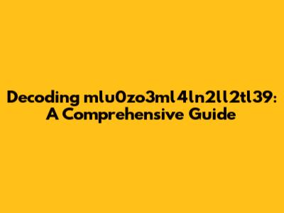 Decoding Mlu0zo3ml4ln2ll2tl39: A Comprehensive Guide