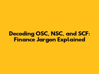 Decoding OSC, NSC, And SCF: Finance Jargon Explained