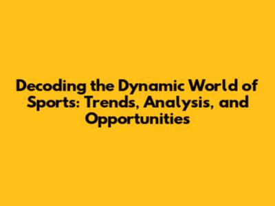 Decoding The Dynamic World Of Sports: Trends, Analysis, And Opportunities