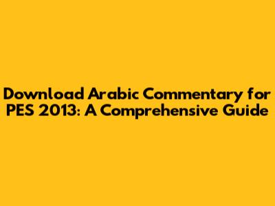 Download Arabic Commentary For PES 2013: A Comprehensive Guide