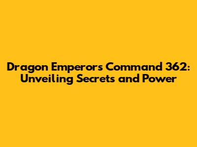 Dragon Emperor's Command 362: Unveiling Secrets And Power