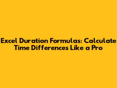 Excel Duration Formulas: Calculate Time Differences Like A Pro