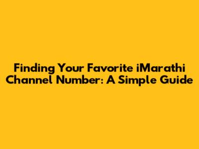 Finding Your Favorite IMarathi Channel Number: A Simple Guide