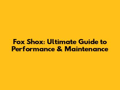 Fox Shox: Ultimate Guide To Performance & Maintenance