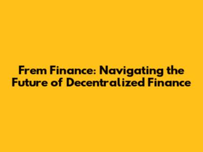 Frem Finance: Navigating The Future Of Decentralized Finance