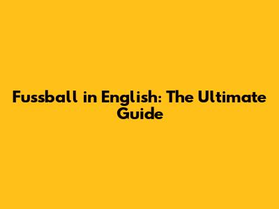 Fussball In English: The Ultimate Guide