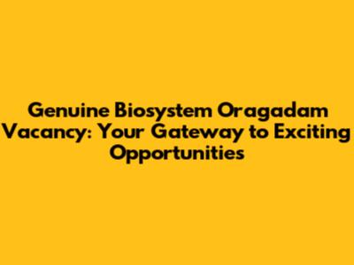 Genuine Biosystem Oragadam Job Openings: Find Your Next Opportunity!