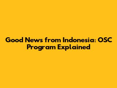 Good News From Indonesia: OSC Program Explained