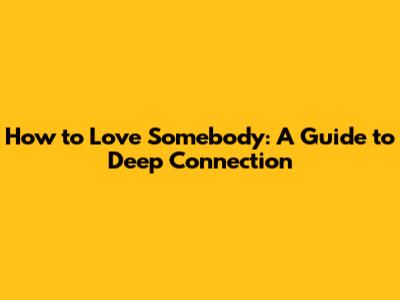 How To Love Somebody: A Guide To Deep Connection