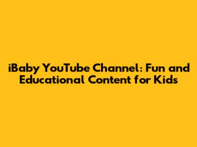 IBaby YouTube Channel: Fun And Educational Content For Kids