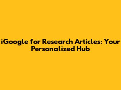 IGoogle For Research Articles: Your Personalized Hub