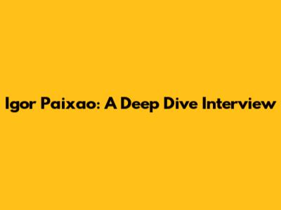 Igor Paixao: A Deep Dive Interview
