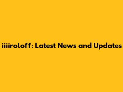 Iiiroloff: Latest News And Updates