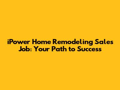 IPower Home Remodeling Sales Job: Your Path To Success