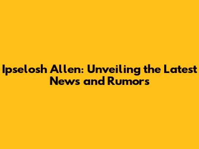 Ipselosh Allen: Latest News, Rumors, And Updates