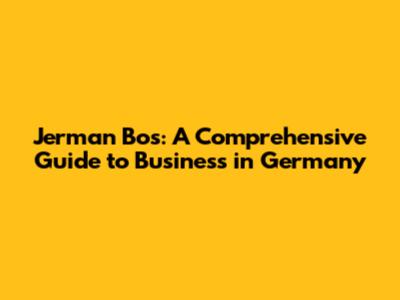 Jerman Bos: A Comprehensive Guide To Business In Germany