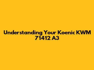 Understanding Your Koenic KWM 71412 A3