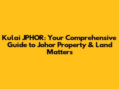 Hey guys! Ever find yourself tangled in the world of property and land dealings in Kulai, Johor? It can feel like navigating a maze, right? That's where JPHOR comes in! JPHOR, which stands for Jabatan Pengarah Tanah dan Galian Johor (Department of Director of Lands and Mines Johor), is the key to unlocking all things related to land and property in the state. In this article, we're diving deep into everything you need to know about Kulai JPHOR, making your property journey smoother and less stressful. Forget the confusion; we're here to simplify it all!
