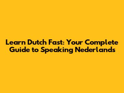 Learn Dutch Fast: Your Complete Guide To Speaking Nederlands