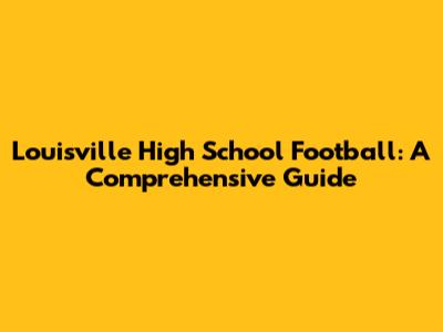 Hey guys! Welcome to your ultimate guide to Louisville High School football! Whether you're a die-hard fan, a parent, or just someone curious about the local sports scene, this is the place to be. We're going to dive deep into everything Louisville high school football, from game schedules and player stats to team histories and what makes this sport so special in our community. Get ready to learn about the thrills, the spills, and the unforgettable moments that make Friday night lights a Louisville tradition. Let's get started!