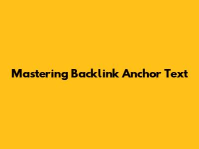Mastering Backlink Anchor Text