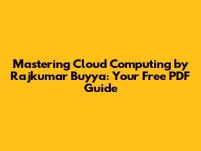 Mastering Cloud Computing By Rajkumar Buyya: Your Free PDF Guide