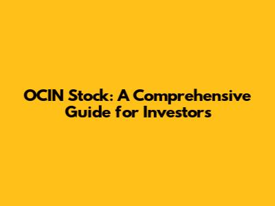 OCIN Stock: A Comprehensive Guide For Investors