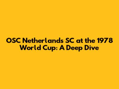 OSC Netherlands SC At The 1978 World Cup: A Deep Dive