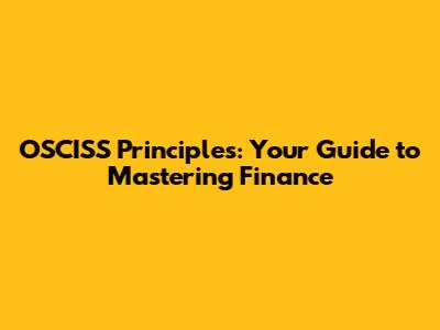 OSCISS Principles: Your Guide To Mastering Finance