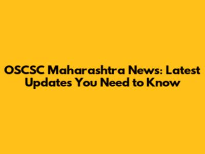 OSCSC Maharashtra News: Latest Updates