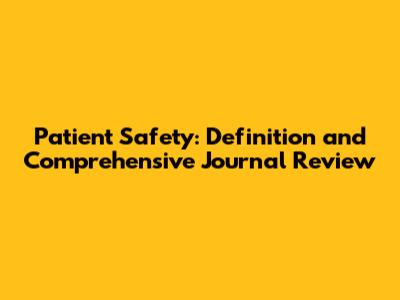 Patient Safety: Definition And Comprehensive Journal Review