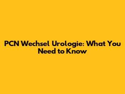 PCN Wechsel Urologie: What You Need To Know