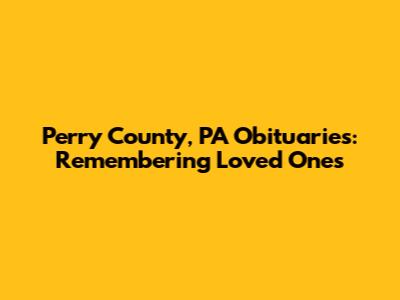 Perry County, PA Obituaries: Find Recent Death Notices