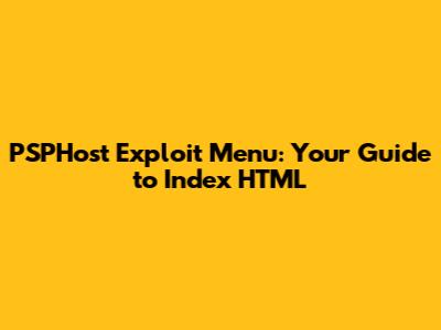 PSPHost Exploit Menu: Your Guide To Index HTML