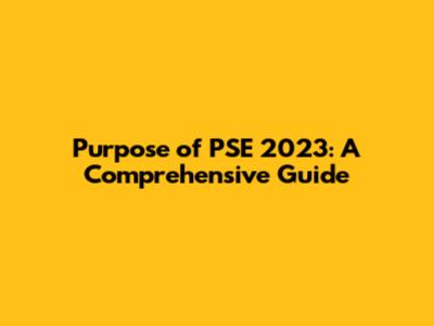 Purpose Of PSE 2023: A Comprehensive Guide