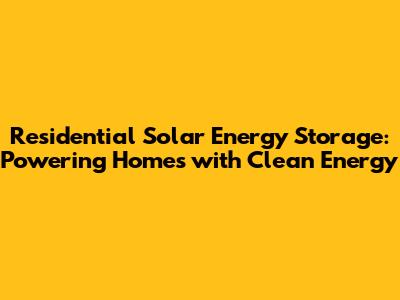 Residential Solar Energy Storage: Powering Homes With Clean Energy