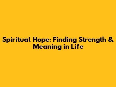Spiritual Hope: Finding Strength & Meaning In Life