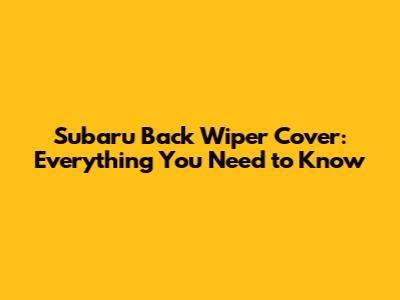 Subaru Back Wiper Cover: Everything You Need To Know