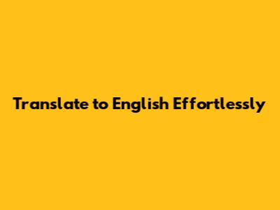Translate To English Effortlessly