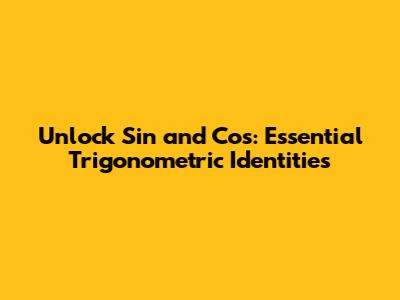 Unlock Sin And Cos: Essential Trigonometric Identities