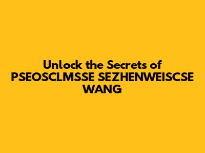 Unlock The Secrets Of PSEOSCLMSSE SEZHENWEISCSE WANG