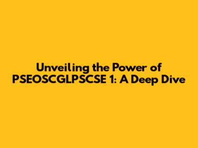 Unveiling The Power Of PSEOSCGLPSCSE 1: A Deep Dive