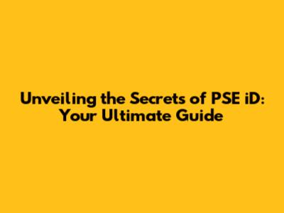 Unveiling The Secrets Of PSE ID: Your Ultimate Guide